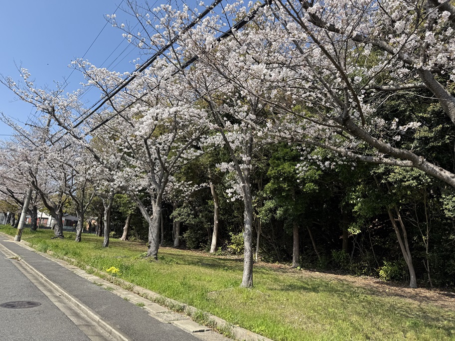 春の気配を感じる今日この頃ですが、コムサイトの後ろの通り沿いにある桜の木が七分咲きくらいになっていました。